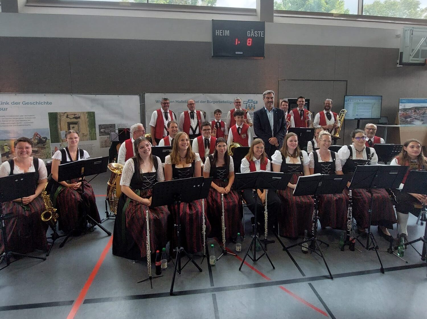 Am 25.07.2025 umrahmte die Trachtenkapelle Oerlenbach eine Veranstaltung zum Thema „Suedlink“ in der Heglerhalle Oerlenbach musikalisch. Unter den Gästen befand sich auch der bayerische Ministerpräsident Markus Söder.